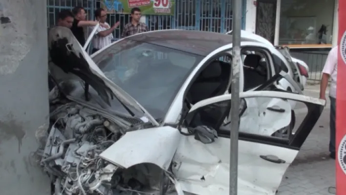 Hayat Hastanesi önünde meydana gelen kazada içerisinde 4 kişi bulunan özel otomobil üst geçidin beton ayağına çarparak durabildi. Hurdaya dönen araçta bulunanlar ağır yaralı