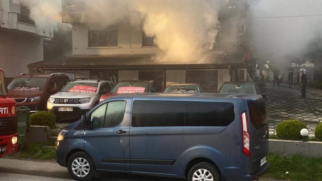Araç kiralama şirketinde çıkan yangın söndürüldü
