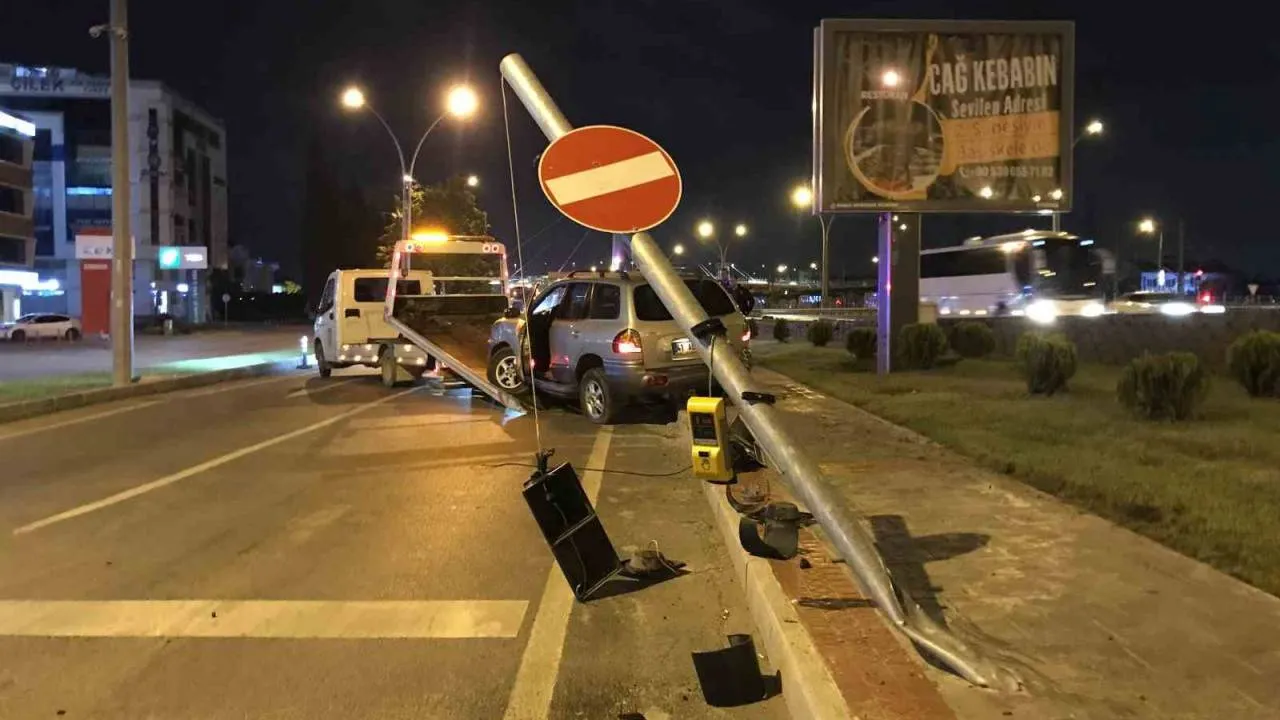 Aracıyla sinyalizasyon direğini devirip koşarak bölgeden uzaklaştı