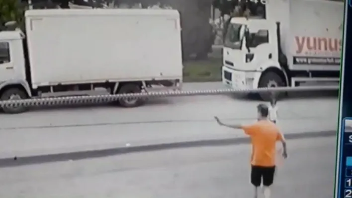 Araçların arasından geçmeye çalışan çocuğu esnaf ezilmekten kurtardı