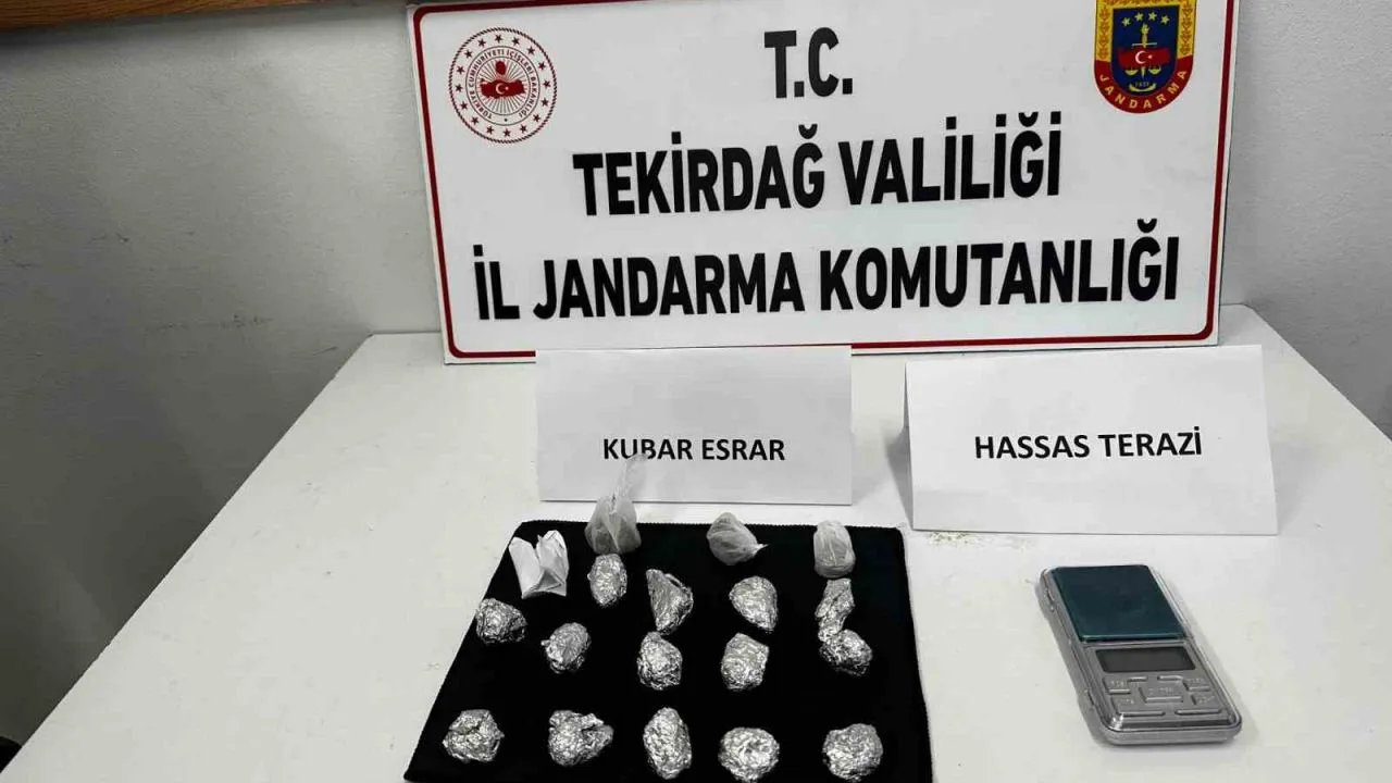 Kapaklı İlçe Jandarma Komutanlığı ekiplerince aranan şahıslara yönelik yapılan çalışmalarda, Çerkezköy İlamat ve İnfaz Bürosu’nda infaza yönelik aranma kaydı bulunan ve 1 yıl 5 ay 20 gün kesilmiş hapis cezası bulunan Ş.D. isimli şahıs yakalandı. Gözaltına alınan şahsın adresinde yapılan aramada da, 18 adet satışa hazır halde fişeklenmiş 36 gram kubar esrar, 1 hassas terazi ve 1 cep telefonu ele geçirildi.