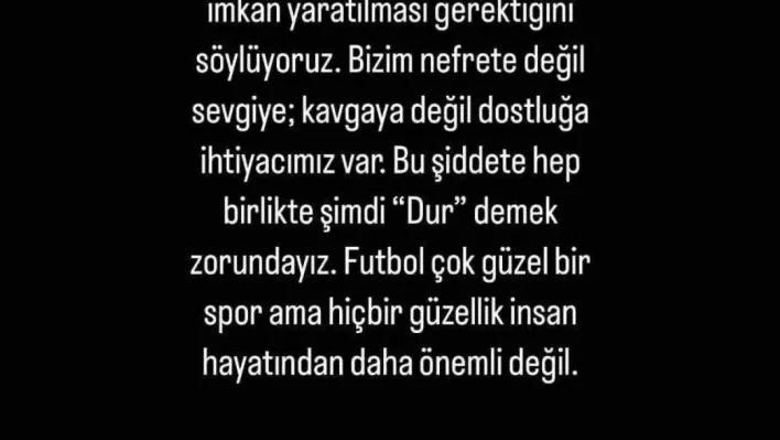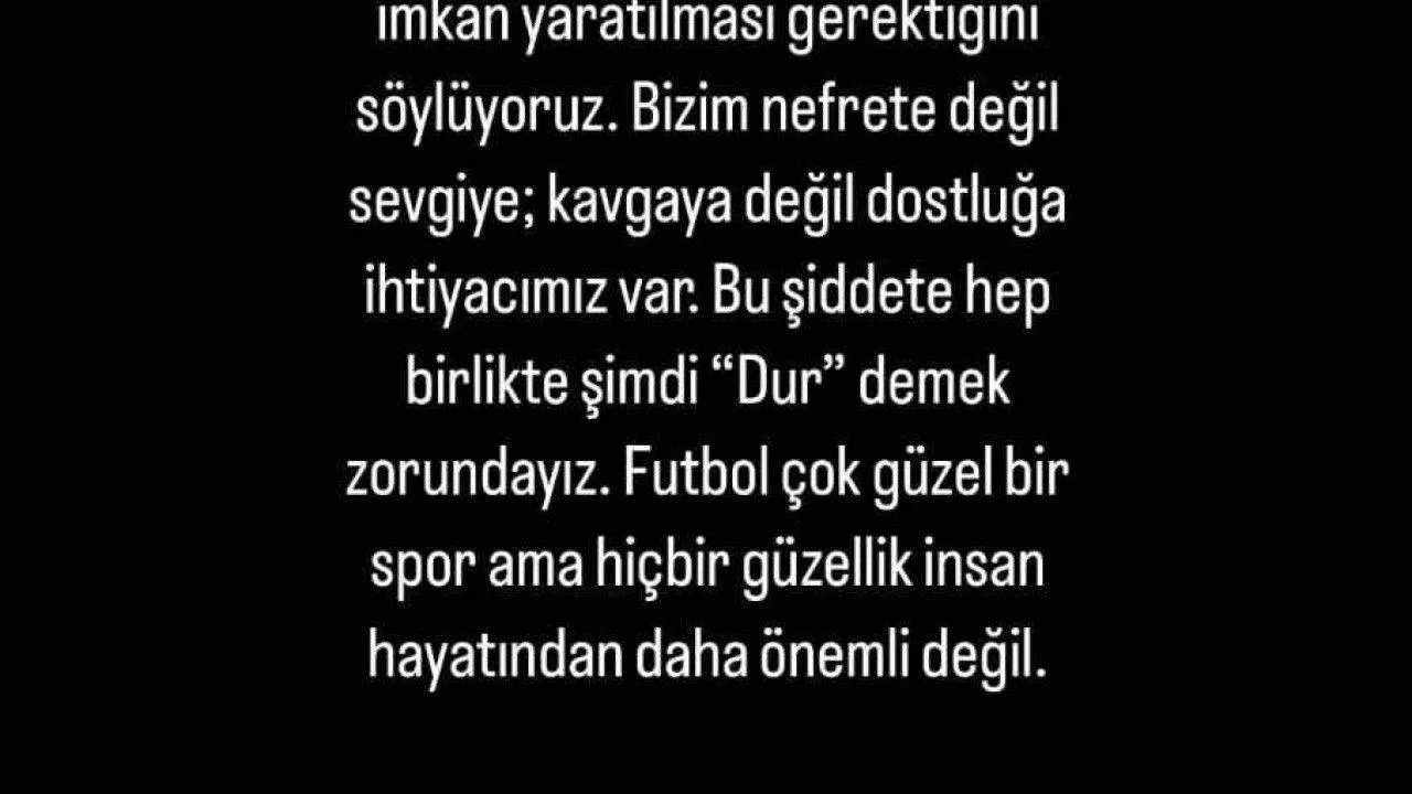 Ankaragücü, Trendyol Süper Lig’in 15. haftasında konuk ettiği Çaykur Rizespor ile 1-1 berabere kaldı. Mücadelenin bitiş düdüğünün ardından Ankaragücü Başkanı Faruk Koca, müsabakanın hakemi Halil Umut Meler’e fiziksel saldırıda bulundu. Ankara Eryaman Stadyumu’nda yaşanan olay sonrası Eyüpspor Teknik Direktör Arda Turan, konuyla ilgili kınama mesajı yayımladı. Turan, “Her fırsatta spor dostluk ve kardeşliktir diyoruz. Her fırsatta bu ülkenin çocuklarının hayallerini sporla gerçekleştirmesi için daha fazla imkan oluşturulması gerektiğini söylüyoruz. Bizim nefrete değil sevgiye; kavgaya değil dostluğa ihtiyacımız var. Bu şiddete hep birlikte şimdi “Dur” demek zorundayız. Futbol çok güzel bir spor ama hiçbir güzellik insan hayatından daha önemli değil. Bugün yaşadığımız sahneleri kabul etmemiz mümkün değil. Halil Umut Meler’e yapılan saldırıyı kınıyorum. Kendisine geçmiş olsun dileklerimi iletiyorum” şeklinde konuştu.