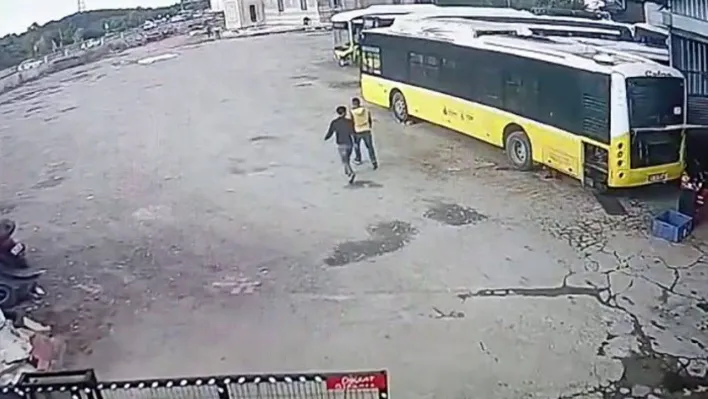 Güvenlik kamerasına yansıyan görüntülerde, hırsızlık yapmak amacı ile otoparka giren 2 kişiyi fark eden otobüs şoförlerinin şüphelilerin peşinden koşarak durdurmaya çalıştığı görülüyor.