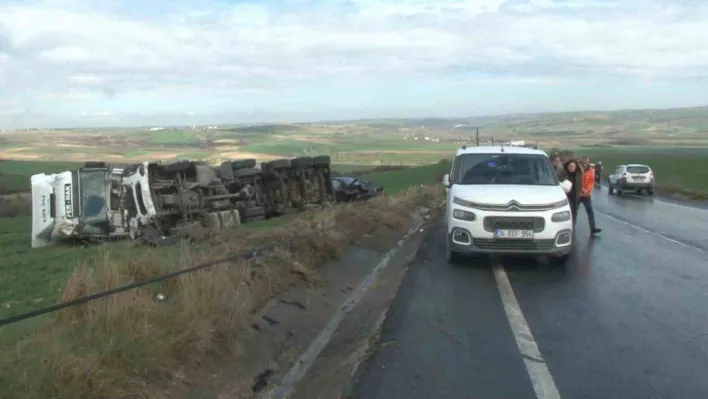 Arnavutköy’de direksiyon hakimiyetini, kaybeden hafriyat kamyonu sürücüsü, karşı şeritten gelen otomobile çarptı. Kaza sonucunda araçlar tarlaya uçarak durabilirken kazada otomobilde bulunan 1 kişi yaralanarak hastaneye kaldırıldı.
