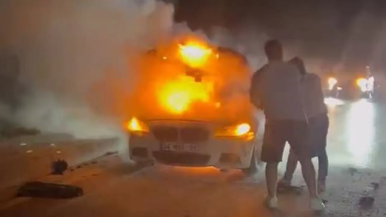 Arnavutköy'de seyir halindeki araç alev alev yandı.