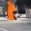 İstanbul Arnavutköy'de seyir halindeki motosiklet alev alev yandı. Motosiklet demir yığınına dönerken, o anlar cep telefonu kamerasına yansıdı.