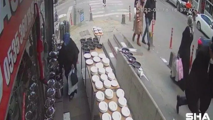 Arnavutköy'de mutfak eşyaları satan bir iş yerinin önünden tencere çalan kadın kameralara yakalandı. Tencereyi poşetine koyan kadın, hırsızlık yaptığı belli olmasın diye reyonu düzelten hırsız daha sonra kayıplara karıştı.