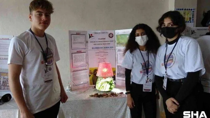 Yaptıkları projeyle ilgili bilgi veren öğrenciler, "Bize oksijenin ormandan, ağaçlardan geldiğini söylüyorlar, fakat bu oksijenin yüzde 20’sine tekabül ediyor. Oksijenin yüzde 80’lik kısmını ise algler, yani su bitkileri karşılıyor. Bu bitkilerin sürekli oksijen üretmesi için de mor ve kırmızı ışığa ihtiyaç var. Biz kavanoza ektiğimiz bu bitkinin kırmızı ve mor ışık kullanarak sürekli oksijen üretmesini sağladık. Evlerimiz kış aylarında oksijensiz kalıyor. Bu geliştirdiğimiz proje sayesinde evler oksijensiz kalmayacak. Bu bitkinin adı elodea. Bu projenin bilhassa nefes darlığı çekenler için gerekli bir proje olduğunu düşünüyoruz" dedi.