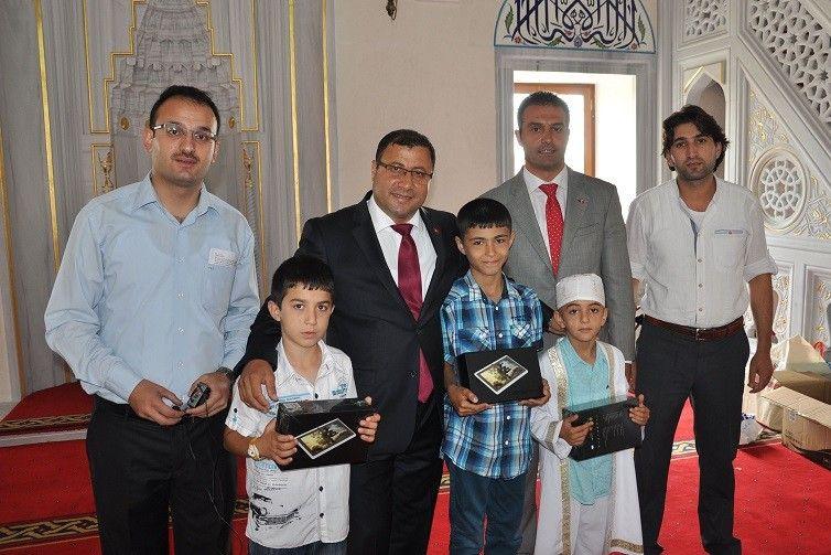 AK Parti Silivri İlçe Başkanı Metin Karakaş, İlçe Müftülüğü tarafından düzenlenen yaz Kuran Kursları kapsamında Yeni Mahalle Şüheda Camiinde Kuran Kursunu başarı ile bitiren talebelere kurs kapanış töreninde tablet bilgisayar hediye etti.