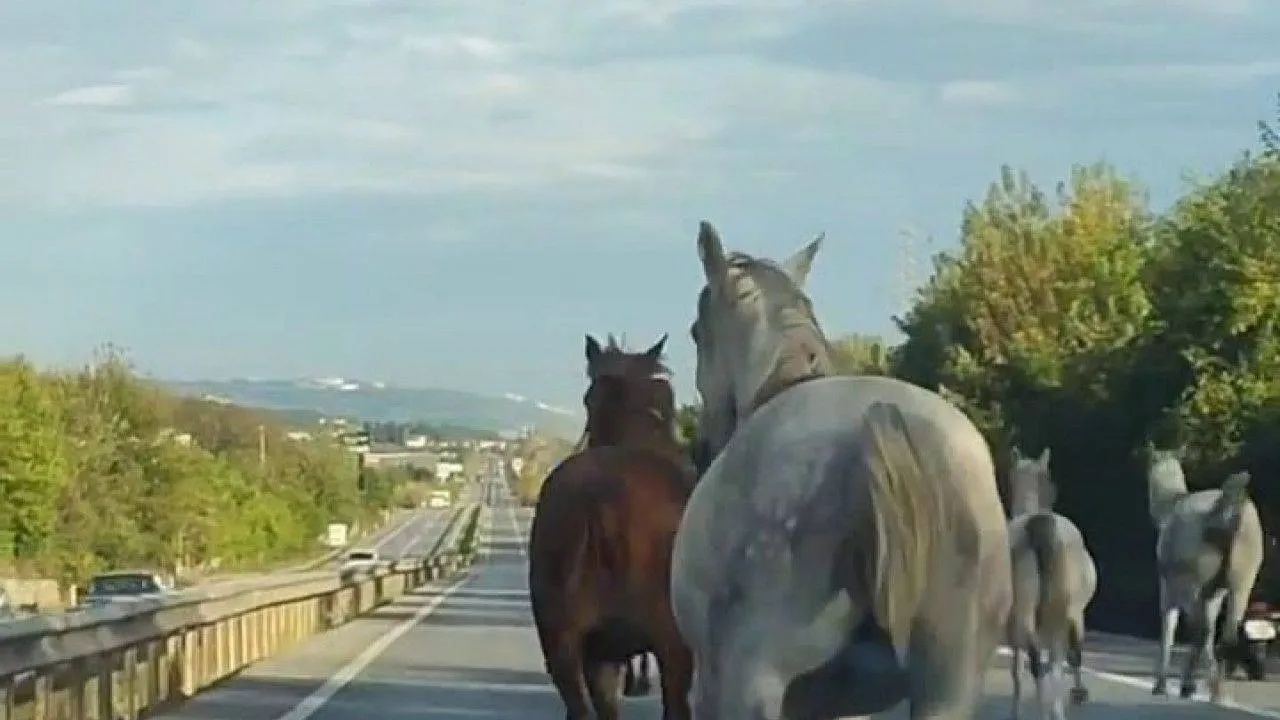 Sakarya ve Kocaeli kesiminde D-100 kara yoluna çıkan atlar dörtnala koştu. Görenleri şaşkına çeviren anlar saniye saniye cep telefonu kamerasıyla kaydedildi.