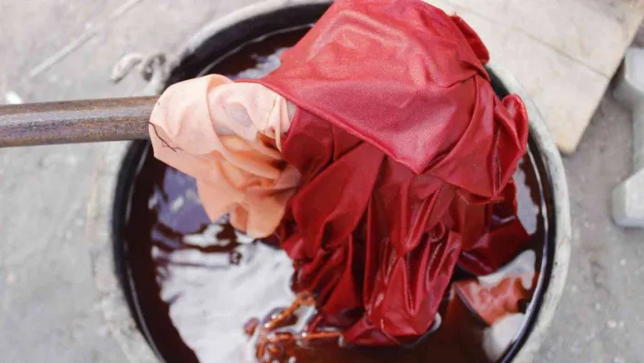 Padişah fermanıyla formülü asırlar önce yasaklanan ve efsane renge ulaşmak için casuslukların bile yapıldığı 'Edirne Kırmızısı'nın rengini aldığı bitkide hasat yapılmasının ardından, kazanlarda kaynatılan kıyafetler yıllar sonra kıyafetlerle buluştu.