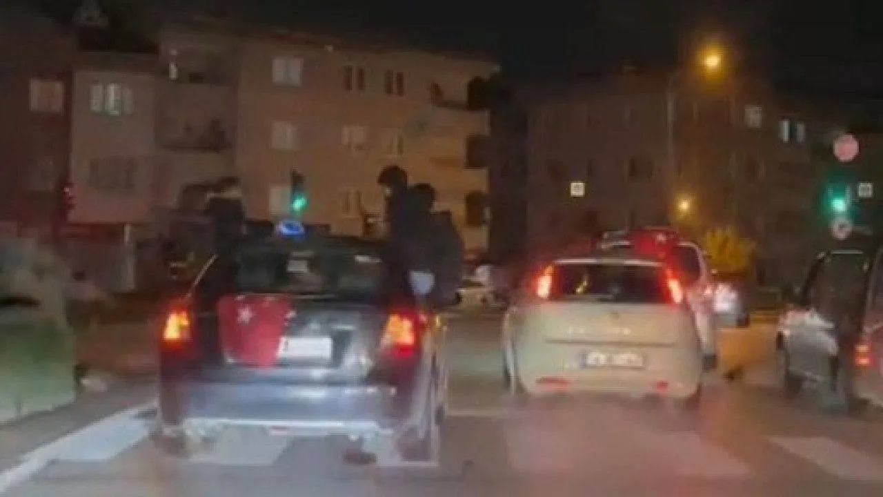 İnegöl’de vatani görevini yapacak olan gencin arkadaşları tarafından konvoy düzenlendi. Araçlarla yapılan konvoyda bazı gençlerin, seyir halindeki araçların camlarından sarkmaları yürekleri ağza getirdi. O anlar amatör kameraya yansıdı.