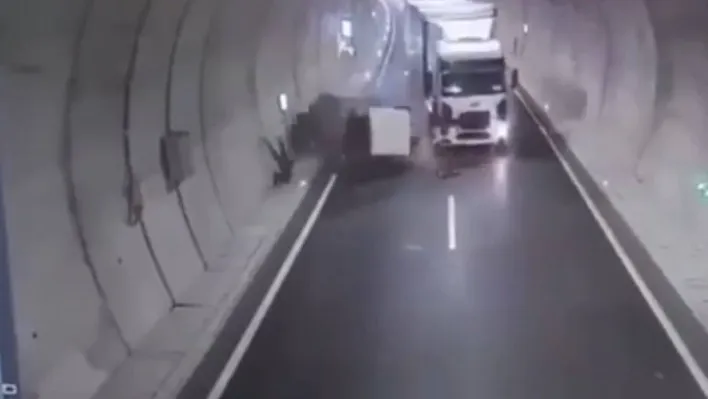 Assos Tüneli içinde traktöre arkadan çarpan kamyonun kaza anına ait görüntüleri ortaya çıktı