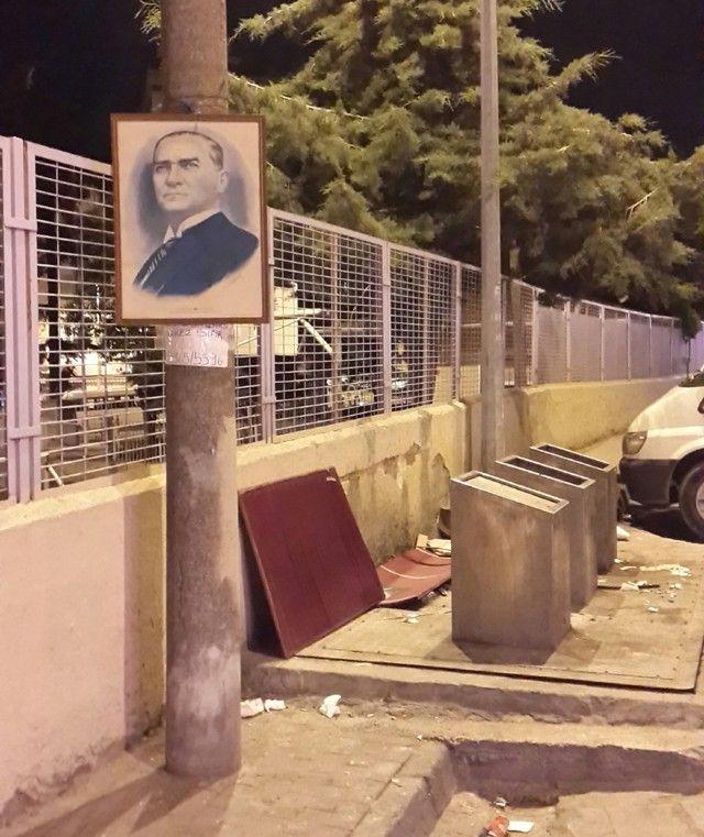 Piri Mehmet Paşa i.ö. okulu arkasındaki çöpte konteyner kenarına bırakılmış Atatürk portresi bulundu.