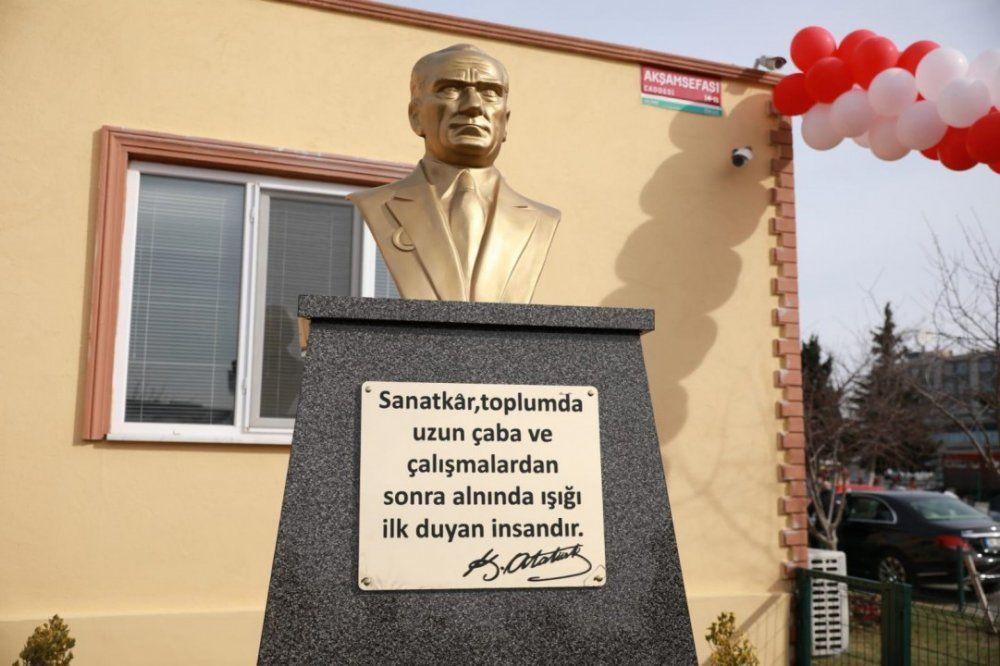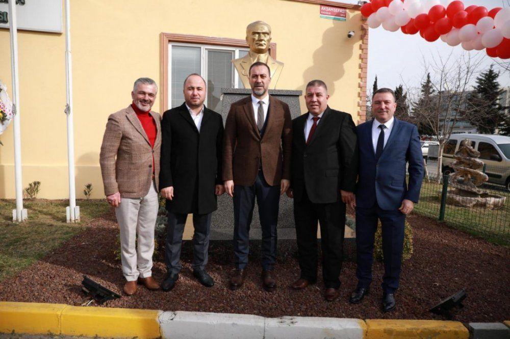 Başkan Yılmaz konuşmasının ardından büstün yapımını üstlenen hayırsever Ergün Atağ’a teşekkür plaketi takdim etti. Tüm protokol üyelerinin büstün önünde kurdele kesmesi ve fotoğraf çektirmesinin ardından program sona erdi.