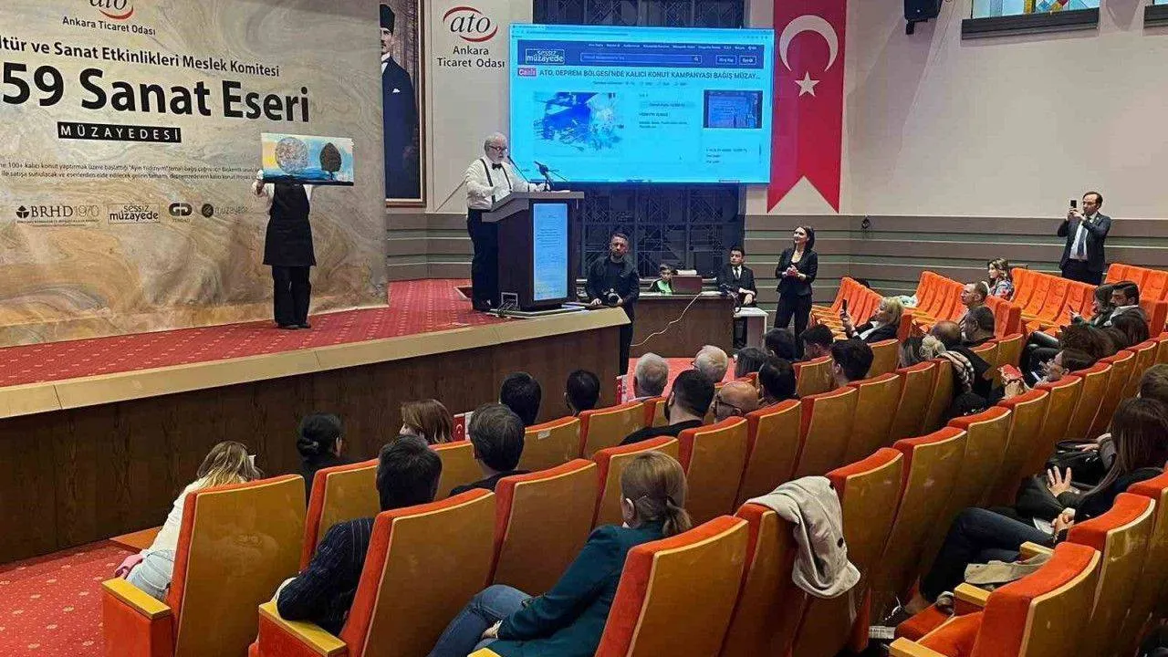 Deprem bölgelerinde kalıcı konut kampanyasına katkı sağlamak için sanatçıların bağışladığı '100+59 Sanat Eseri' müzayedesi Ankara Ticaret Odası (ATO) ev sahipliğinde gerçekleştirildi.