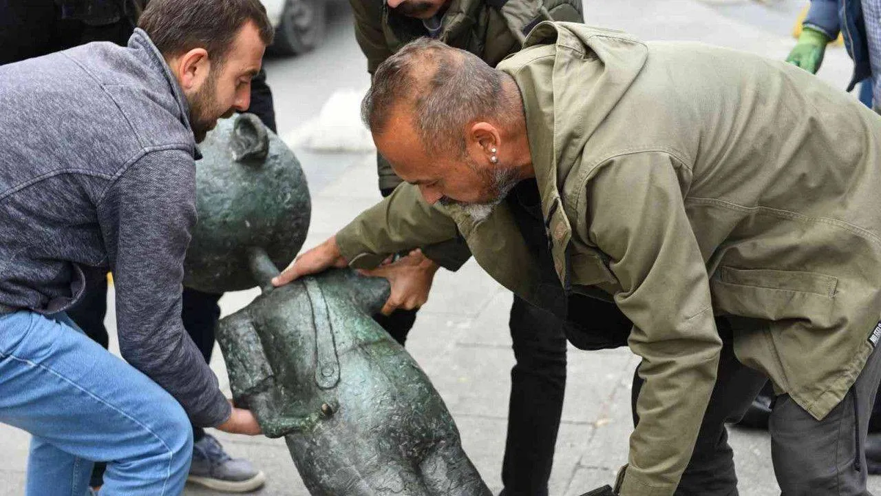 Kadıköy'ün simgelerinden Avanak Avni heykeli onarımı yapıldıktan sonra evine döndü.