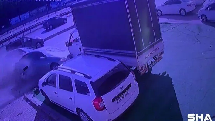 Yaşanan kaza güvenlik kameralarına da saniye saniye yansıdı. Görüntülerde makas atan sürücü, önce seyir halindeki bir araca çarpıyor. Hızla savrulan araç, yol kenarındaki bir kamyonete çarptıktan sonra park halindeki araçların arasına dalıyor.