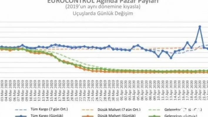DHMİ Genel Müdürü Hüseyin Keskin, Eurocontrol verilerine göre Avrupa Hava trafiğinin 7 Mart-27 Nisan tarihleri arasındaki verilerini paylaştı.