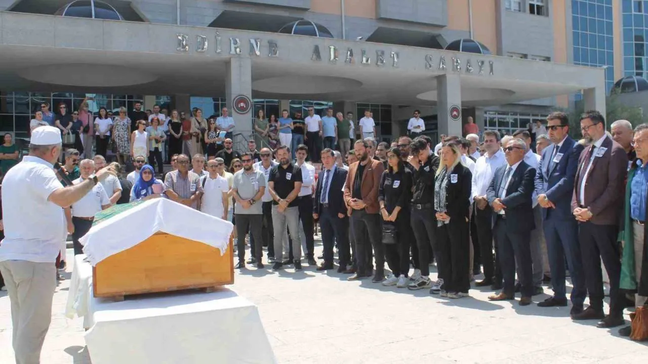 Edirne’de geçtiğimiz gün bir iş merkezinin 5’inci katından beton zemine düşerek feci şekilde hayatını kaybeden avukat için Edirne Adliyesi önünde cenaze töreni düzenlendi.