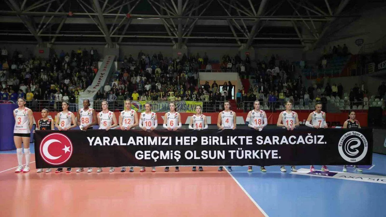 AXA Sigorta Kupa Voley çeyrek final müsabakasında Fenerbahçe Opet ile Eczacıbaşı Dynavit takımları karşılaştı. İki takım da maç öncesinde Kahramanmaraş’ta meydana gelen ve 11 ili etkileyen depremden etkilenen vatandaşlar için "Geçmiş olsun Türkiye" yazılı pankartla çıktı. Derbinin ilk setine iki takım da oldukça istekli başlarken Fenerbahçe Opet 25-23 galip ayrıldı. Karşılıklı sayılarla başlayan ikinci seti de sarı lacivertli ekip 25-15 kazandı ve durumu 2-0’a getirdi. Maçın son setini ev sahibi ekip 27-25, maçı da 3-0 kazandı. Sarı-lacivertliler bu galibiyetle adını dörtlü finale yazdırdı.