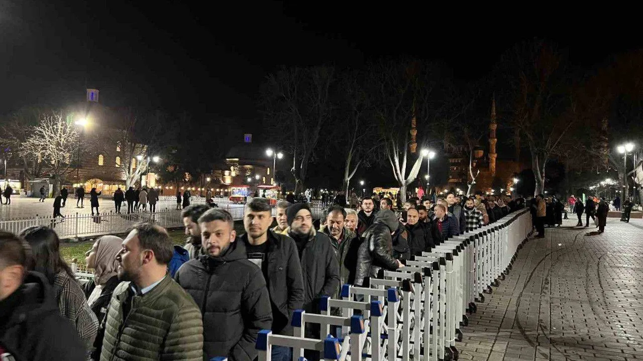 Miraç Kandili sebebiyle birçok vatandaş Ayasofya Camii’ne akın etti. Bu yıl açılışının 3’üncü yılında akşam ezanıyla birlikte Ayasofya’ya gelen vatandaşlar yatsı namazına kadar Kur’an-ı Kerim okuyup, dualar etti. Ayasofya Camii’nin avlusunda ise bazı vakıf temsilcileri camiye gelen vatandaşlara helva ve lokum dağıttı.