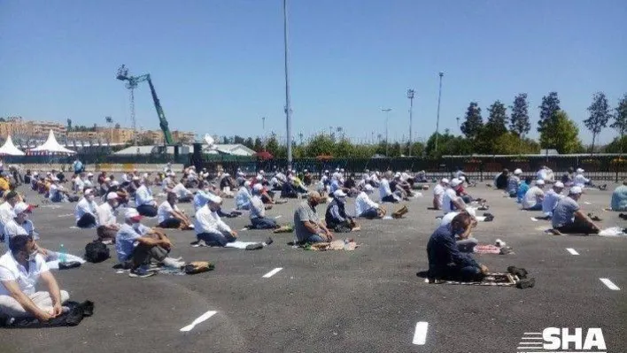 Şehir dışından gelip Ayasofya Camii’ne alan dolduğu için gidemeyen vatandaşlar Cuma namazını Yenikapı etkinlik alanında kıldı.