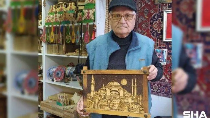 Türkiye’nin tarihi eserlerini yakma tekniğiyle resmeden sanatçının eserleri büyük ilgi görüyor. Ayasofya-i Kebir Cami-i Şerifi, Sultanahmed ve Bursa Ulucamii gibi şaheserlerin ahşap üzerine yakarak resmedildiği tablolar görenleri mest ediyor.