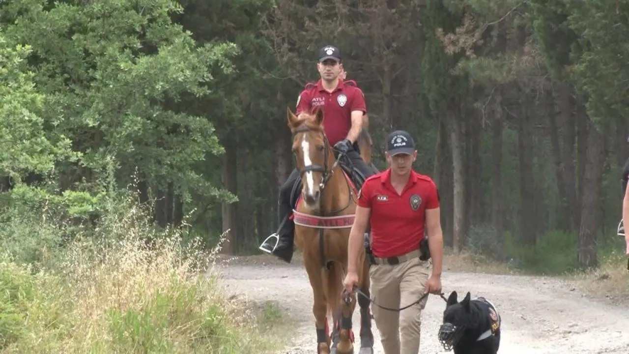 Kartal Aydos Ormanı’nda devriye gezen atlı polisler, piknik yapan vatandaşlar tarafından ilgi gördü. Atlı polislere KEM (Köpek Eğitim Merkezi) birliği eşlik etti.