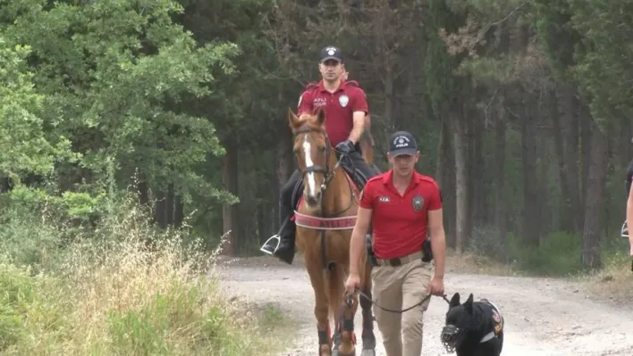 Kartal Aydos Ormanı'nda devriye gezen atlı polisler, piknik yapan vatandaşlar tarafından ilgi gördü. Atlı polislere KEM (Köpek Eğitim Merkezi) birliği eşlik etti.