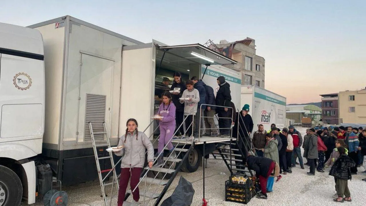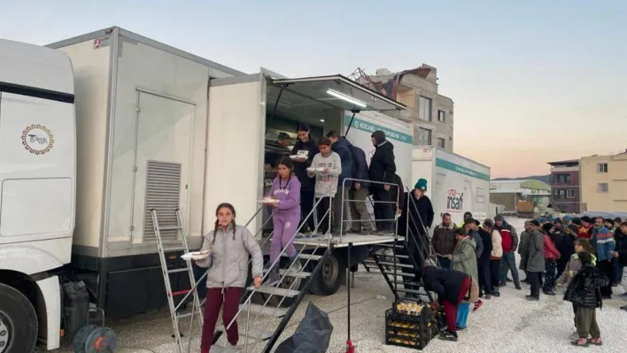 Kocaeli Büyükşehir Belediyesi, Hatay'ın Defne ilçesinde on binlerce kişi için 3 çeşit yemek çıkararak yaraları sarıyor. Mobil afet tırında ise günde 15 bin ekmek üretiliyor.