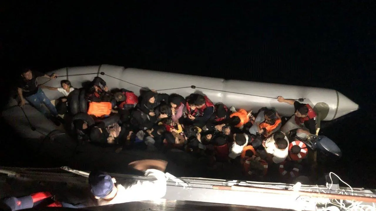 Çanakkale'nin Ayvacık ilçesi açıklarında Sahil Güvenlik ekiplerince durdurulan hareket halindeki lastik bot içinde Afganistan uyruklu 37 kaçak göçmen yakalandı.
