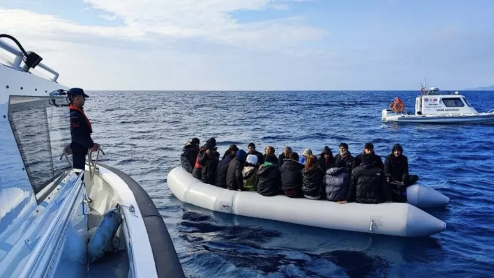 Çanakkale'nin Ayvacık ilçesi açıklarında hareket halinde durdurulan lastik bot içinde Sahil Güvenlik Komutanlığı ekipleri tarafından 37 kaçak göçmen yakalandı.