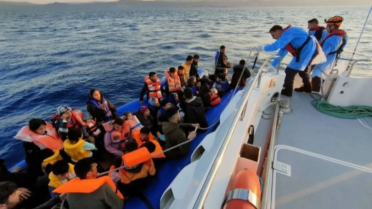 Çanakkale’nin Ayvacık ilçesi açıklarında Sahil Güvenlik Komutanlığı ekipleri, hareket halindeki durdukları lastik bot içinde 43 kaçak göçmeni yakaladı.