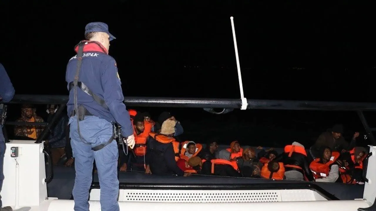 Çanakkale’nin Ayvacık ilçesi açıklarında lastik bot içinde 45 kaçak göçmen yakalandı.