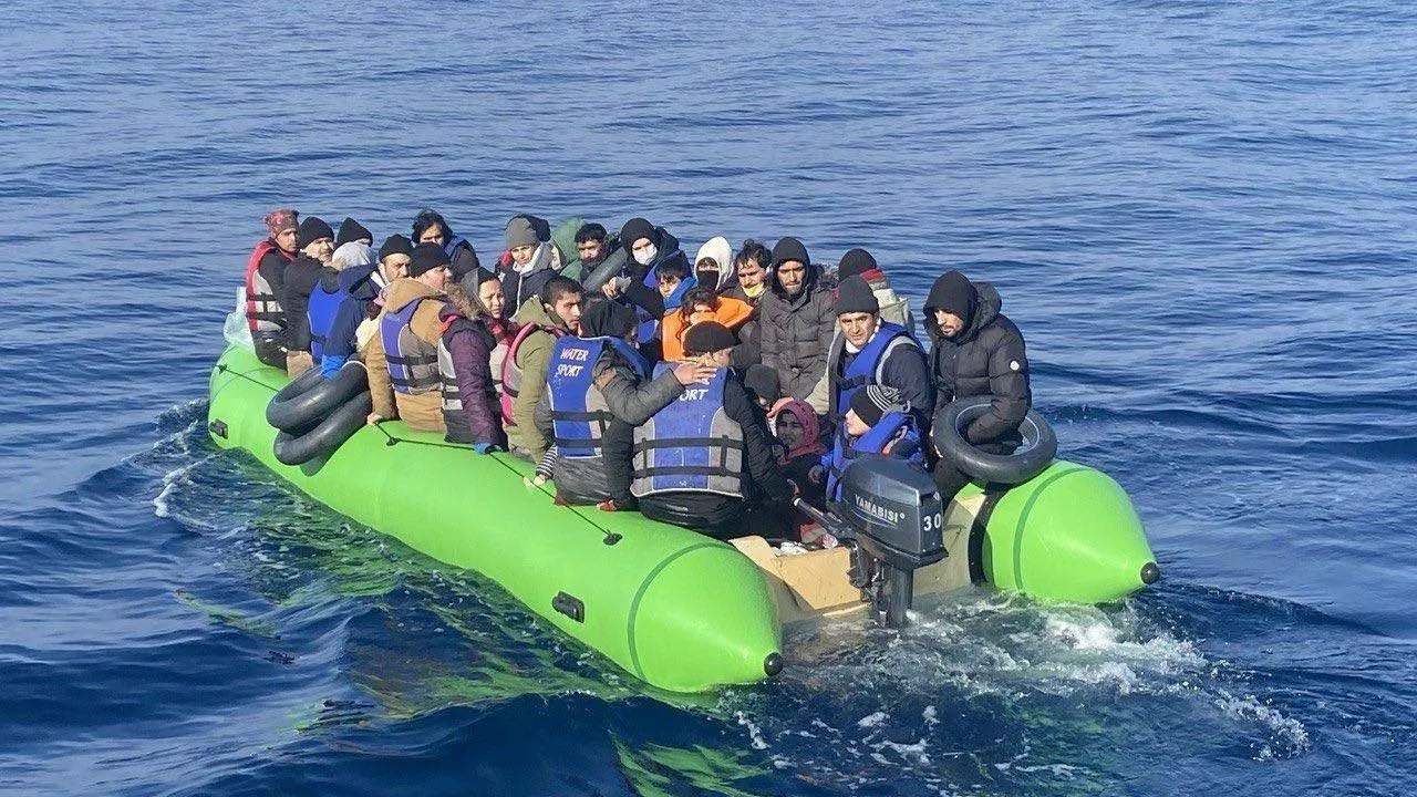 Çanakkale'nin Ayvacık ilçesi açıklarında Sahil Güvenlik ekiplerince lastik bot içinde Afganistan uyruklu 52 kaçak göçmen yakalandı.