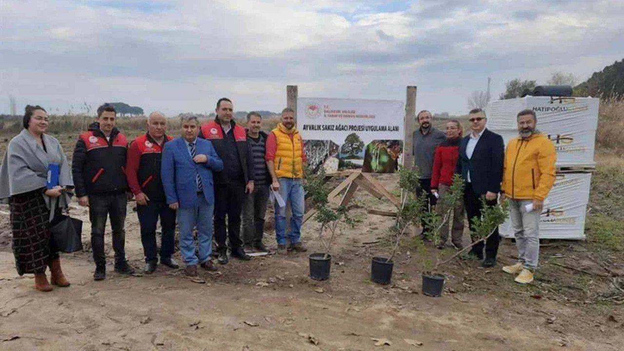 Ayvalık Sakız Ağacı Projesi alanında gerçekleştirilen fidan dikimi etkinliğinde; Ayvalık Kaymakamı Hasan Yaman, Balıkesir İl Tarım Müdürü Erkan Alkan, Ayvalık İlçe Tarım Müdürü Volkan Oral, Ayvalık Orman Şefi Deniz Meltem, Bursa Teknik Üniversitesi Orman Fakültesi Öğretim Görevlisi Doç. Dr. Salih Parlak, Mutluköy Mahalle Muhtarı Erdinç Tügen ve teknik personeller hazır bulundu.