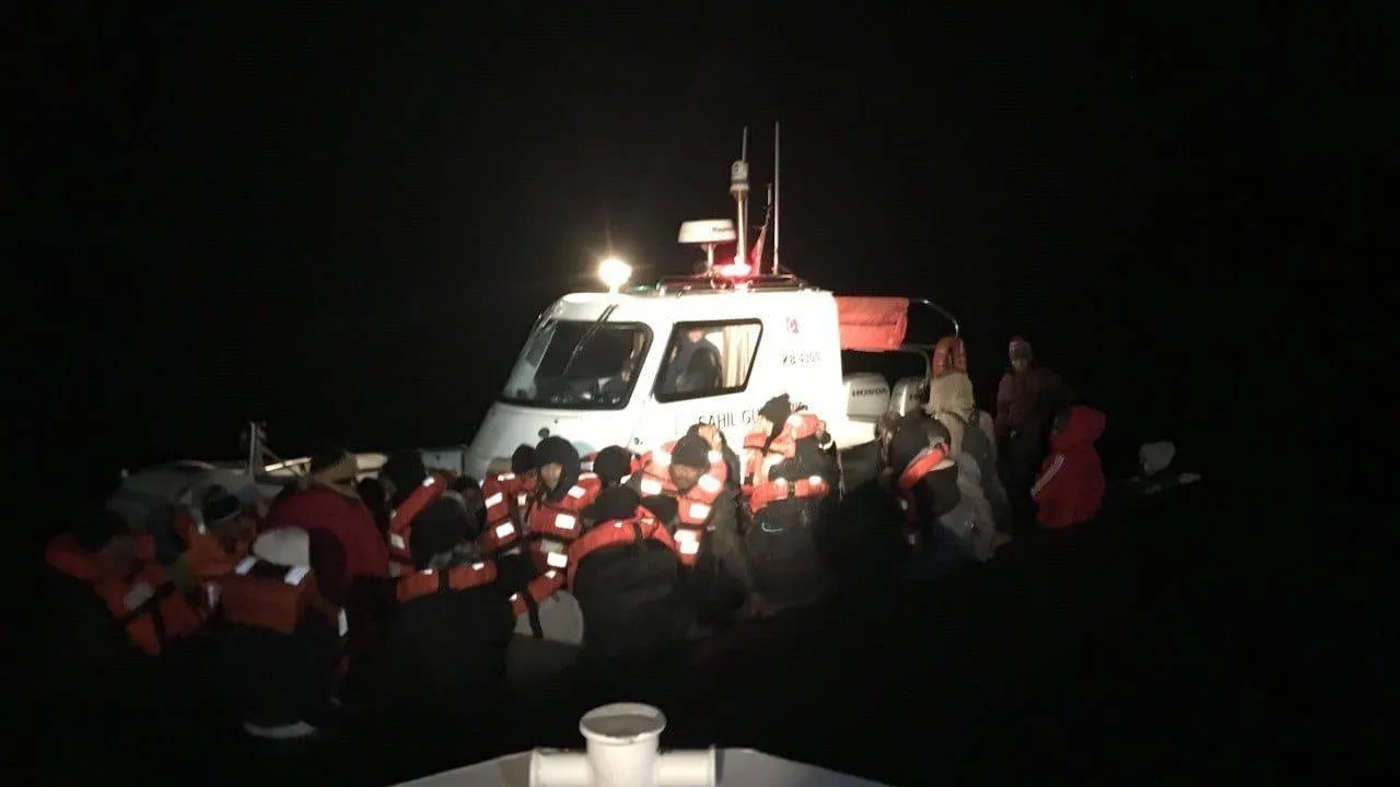 Balıkesir'in Ayvalık ilçesinde, Yunanistan unsurları tarafından Türk karasularına itilen 42 göçmen kurtarıldı.