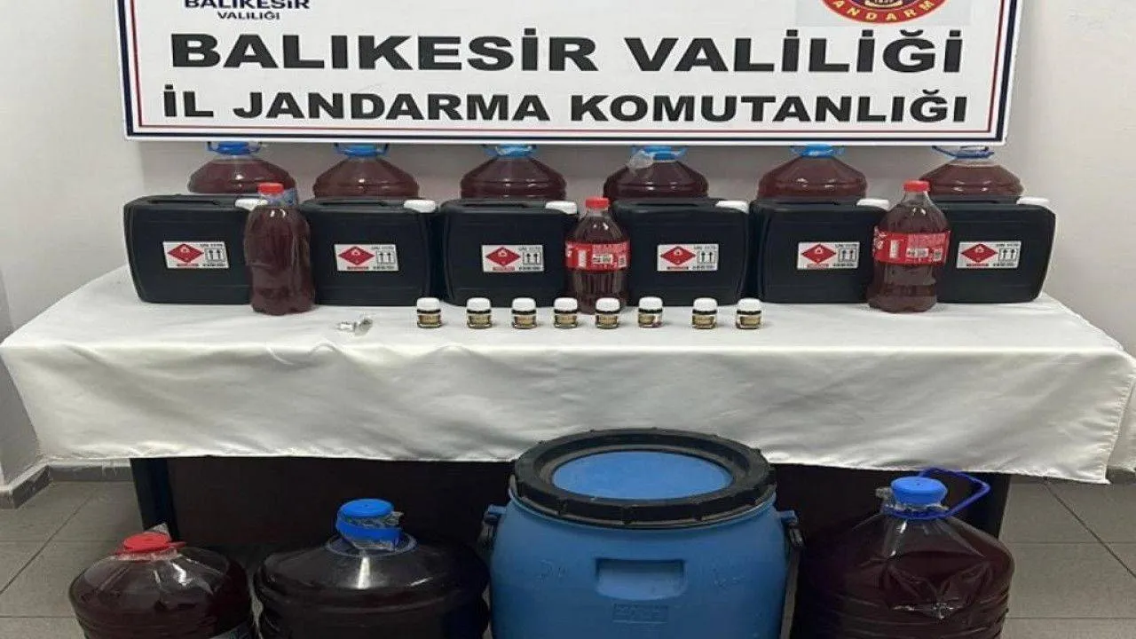 Balıkesir'in Ayvalık ilçesinde, jandarmanın sahte/kaçak içki imal ve ticaretine yönelik yapılan istihbari çalışmalar sonucunda, tespit edilen 2 şüphelinin bulunduğu adreste yapılan aramada 150 litre şarap, 30 litre etil alkol, 8 adet anason, 1 gram metamfetamin ve 1 adet uyuşturucu kullanma aparatı ele geçirilmiştir. Olaya karışan 2 şüpheli yakalandı.