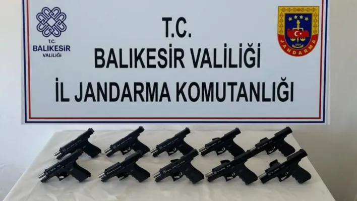 Balıkesir'in Ayvalık ilçesinde jandarma tarafından yapılan operasyonda 10 tabanca ve 8 adet sentetik uyuşturucu hap ele geçirildi.