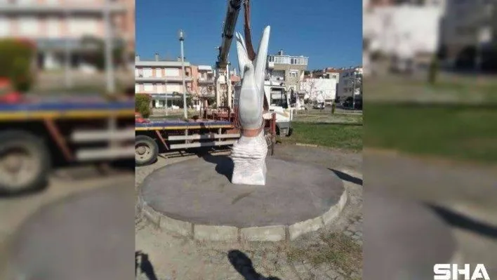 Ayvalık'ta Barış Parkı'na güvercin heykeli