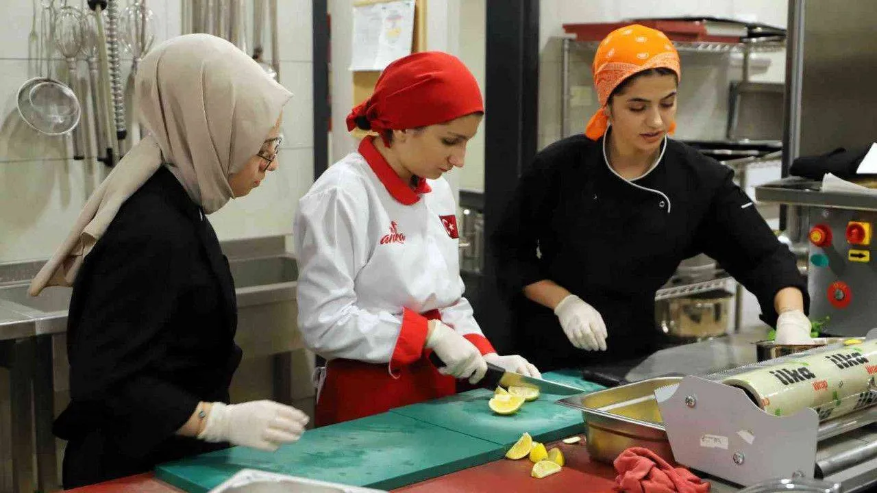 Önlüklerini giyinen öğrenciler, usta öğreticiler rehberliğinde günün belirlenen yemek menüsünü hazırlıyor. Hijyenik bir ortamda hazırlanan 4 çeşit yemek ve tatlı hükümet konağındaki personele servis ediliyor. Özverili bir çalışma neticesinde günlük 600 çalışana yemek hizmeti veriliyor. Her biri geleceğin gastronomu olmaya aday gençler, bu proje sayesinde hem öğreniyor hem de gelir elde ediyor.