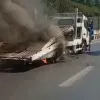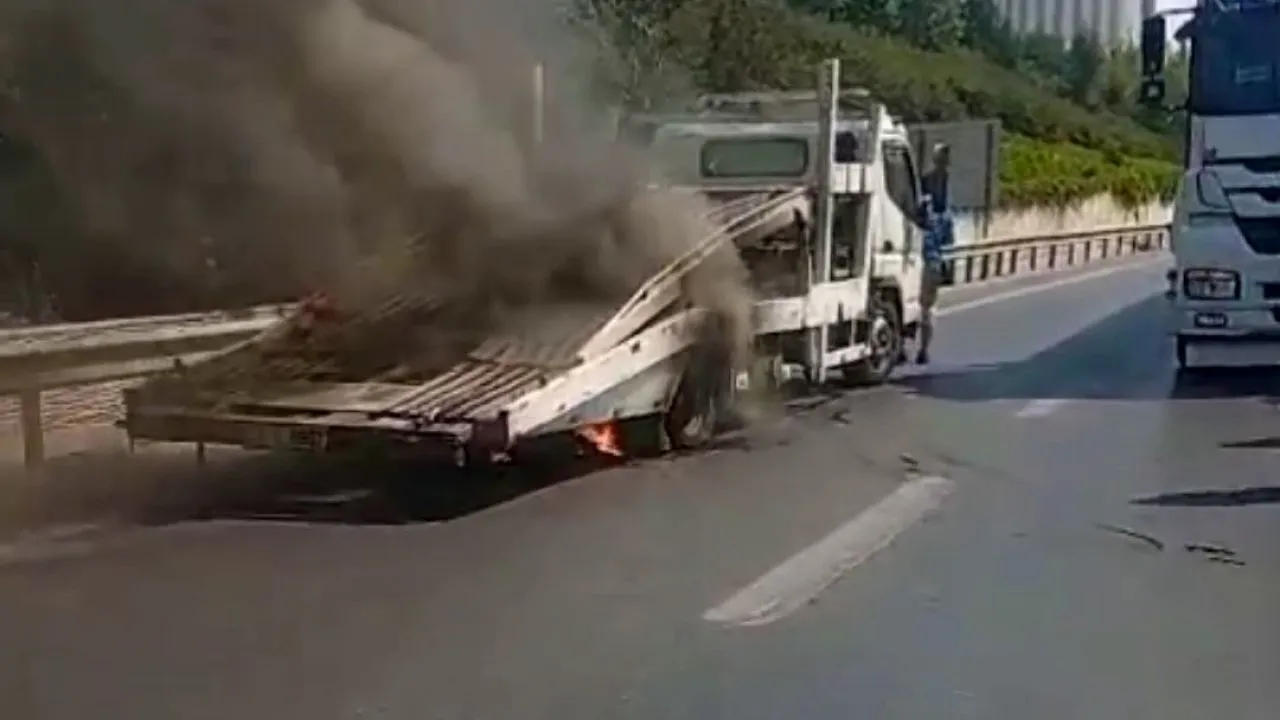 Bağcılar TEM Otoyolu'nda çekici yangını: Alevler sürücülerin müdahalesiyle söndürüldü