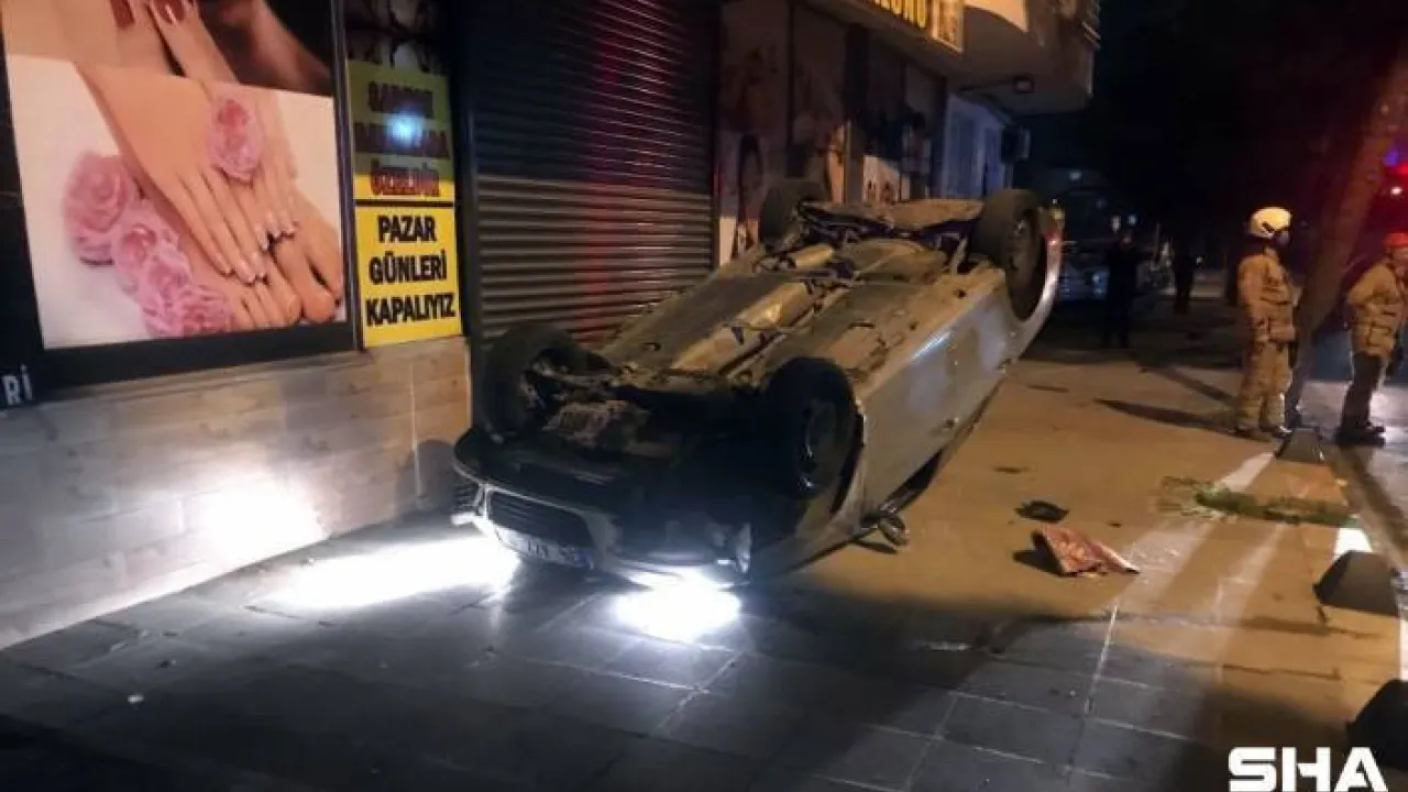 Bağcılar'da kontrolden çıkan araç takla attı