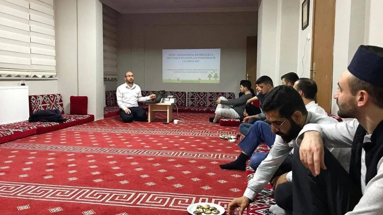 Diyanet Gençlik Merkezinde her hafta düzenlenen sohbetin konusu bu hafta bağımlıkla mücadele oldu. Şerifpaşa Camii İmam Hatibi Adil Yücel ve Din Hizmetleri Uzmanı Numan Kamacı’nın sunum yaptığı sohbete çok sayıda genç katıldı. Öğrenciler gerçekleştirilen sohbet için yetkililerine teşekkür etti.