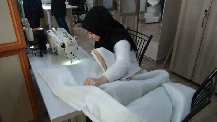 Bağışlanan kumaşlar depremzedelere battaniye oluyor