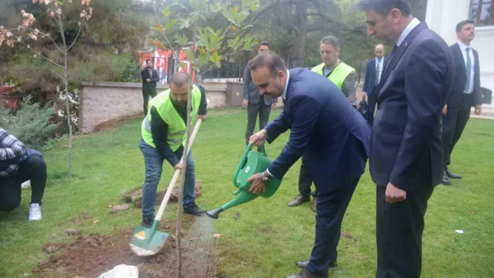 Sanayi ve Teknoloji Bakanı Mehmet Fatih Kacır, bir takım ziyaretler için geldiği Bilecik'te adına hazırlanan fidanı dikerek can suyu verdi.