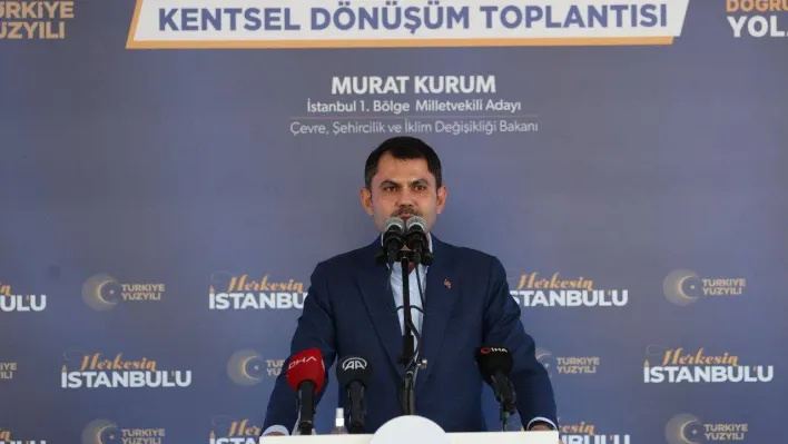 Maltepe’de bir dizi programa Bakan Kurum, "Şimdi sizlerle, iş insanlarımızla, muhtarlarımızla, STK temsilcilerimizle, site sakinlerimizle beraberiz. Buradan sonra Başıbüyük mahallemizde kentsel dönüşüm toplantımızı gerçekleştireceğiz, müjdelerimizi vereceğiz. Sonra yine Maltepe’mizde 16 blokta 431 konutluk projemizin temellerini atacağız. Şu anda, İstanbul’un bu tarihi dönüşümünde, bu yüzyılın dönüşümünde Yarısı Bizden Kampanya’mıza başvuru sayısı kaç oldu biliyor musunuz? Bugün itibariyle İstanbul’umuzda 467 bin bağımsız bölüm için şimdiden yapılan toplam başvuru sayısı 87 bine ulaştı. Maltepeli kardeşlerimiz de bu kampanyamıza yoğun ilgi göstermeye devam ediyor. Yani daha şimdiden 1 milyon 900 bin vatandaşımızın hayatı değişiyor. Maltepeli kardeşlerimiz de kampanyamıza yoğun ilgi göstermeye devam ediyor. Size söz, Maltepe’ye söz, İstanbul’a söz. Bu aziz şehirde 5 yıl içerisinde hiçbir riskli yapı kalmayacak, İstanbullu hiçbir kardeşim riskli yapıda oturmayacak. Hiçbir gencimiz, güvensizlik hissetmeyecek. Hiçbir annemiz, babamız, yastığa başını tedirgin bir şekilde koymayacak. Milletvekili adayı olduğumuz günün üzerinden tam 25 gün geçti. Sadece şu 25 günde İstanbul’da Maltepe’den Bağcılar’a, Kağıthane’de Şile’ye, Üsküdar’dan Kadıköy’e 39 ilçemizde milyarlarca lira değerinde 100’ü aşkın projenin temellerini attık. Kentsel dönüşümden sosyal konuta, millet bahçelerimizden belediyelerimizin projelerine yaptığımız desteklere kadar 100’den fazla yatırımın teslimini gerçekleştirdik. Yine bu 25 günde yüz binlerce İstanbullu vatandaşımızın hayatını değiştirecek kararlar aldık’’ dedi.