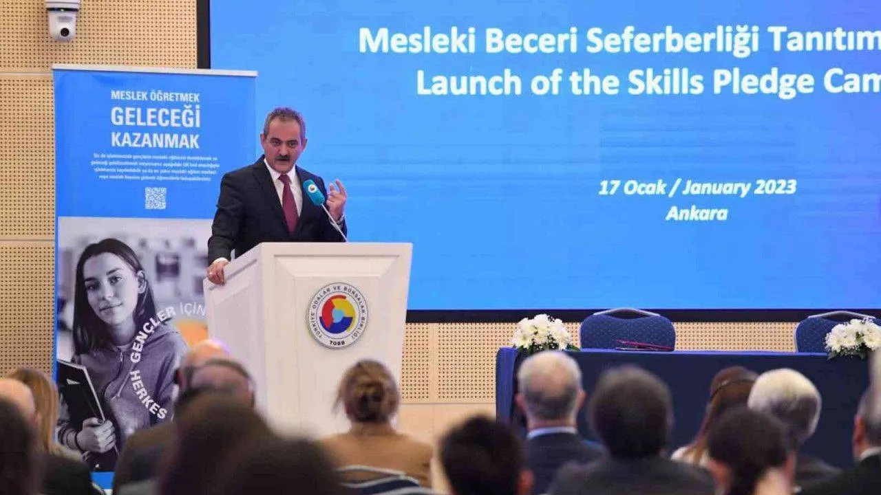 Milli Eğitim Bakanı Mahmut Özer, TOBB Sosyal Tesisleri Konferans Salonu’nda düzenlenen ‘Mesleki Beceri Seferberliği Tanıtım Programı’na katıldı. Burada bir konuşma gerçekleştiren Özer, TOBB’un (Türkiye Odalar ve Borsalar Birliği) yalnızca mesleki anlamda değil, eğitimin güçlenmesi ve erişimin artırılması anlamında MEB’in en önemli paydaşları arasında olduğunu söyledi.
