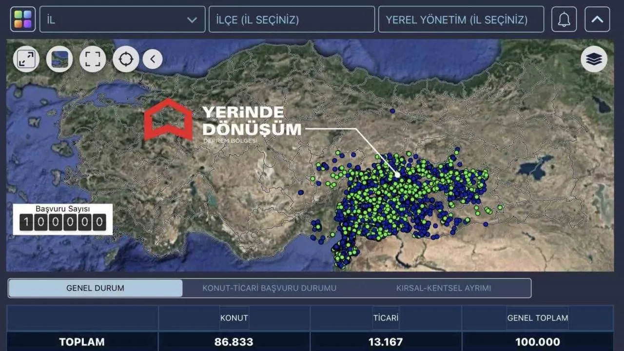 Çevre, Şehircilik ve İklim Değişikliği Bakanı Mehmet Özhaseki, sosyal medya üzerinden yaptığı paylaşımda, “Deprem bölgesindeki şehirlerimizi yeniden ayağa kaldıracak ’Yerinde Dönüşüm’ projemize 8. günde başvuru sayısı 100 bini buldu. Bu müracaatların 86 bin 833’ü konut ve 13 bin 167’si iş yeri şeklinde gerçekleşti. Her daim yanımızda olup bizlere güvenini gösteren tüm vatandaşlarımıza teşekkür ediyorum. Biz; bir ve beraberiz. Şehirlerimizi güvenli bir şekilde inşa ederek eski canlılığına hep birlikte kavuşturacağız” ifadelerini kullandı.